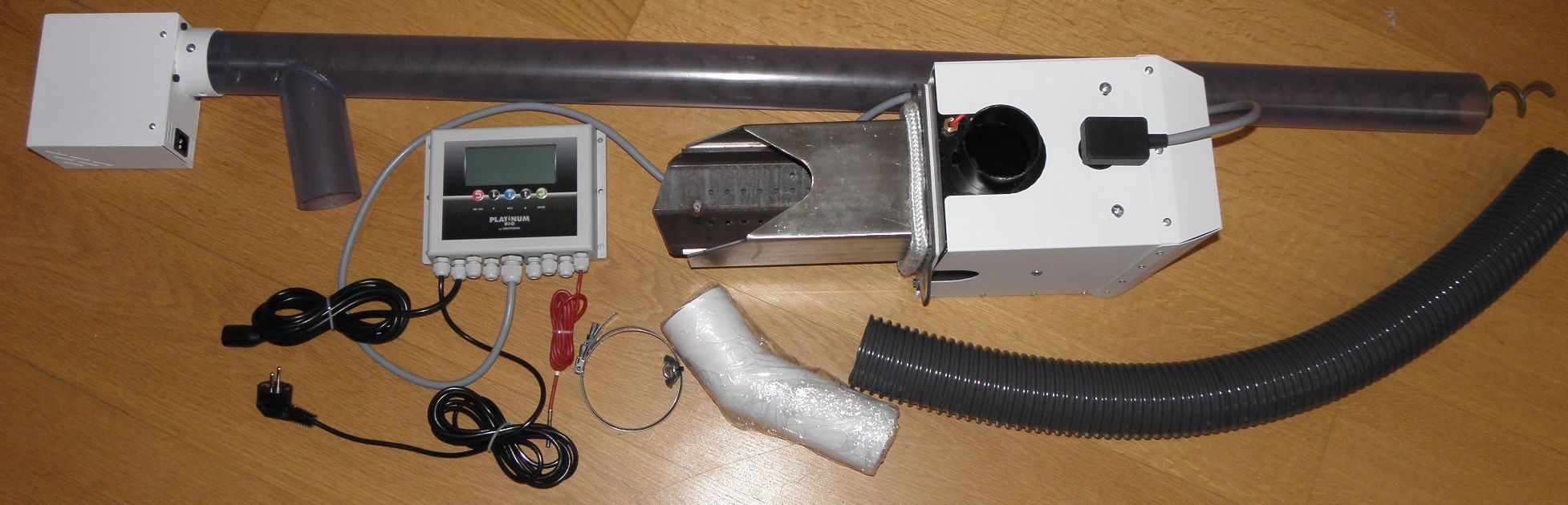 Pellettipoltin 5-16 kW. Polttimen mukana tulee 1.5 m syöttökierukka sekä ohjausyksikkö graafisella näytöllä.